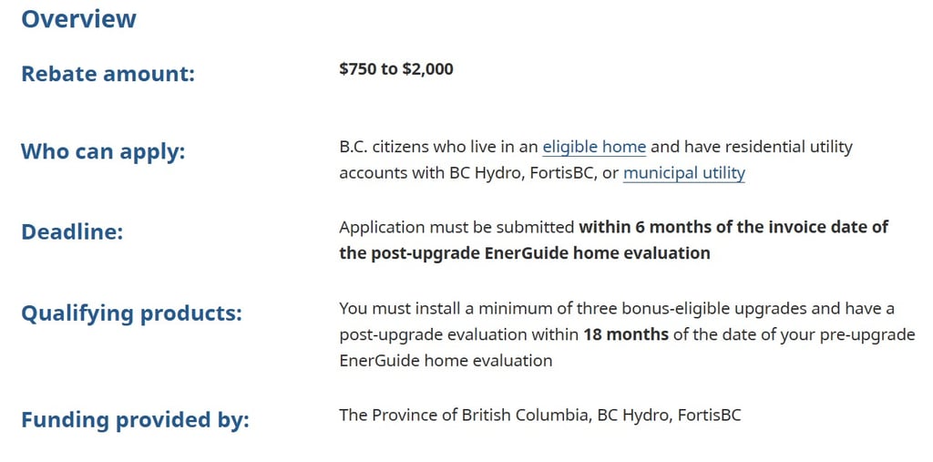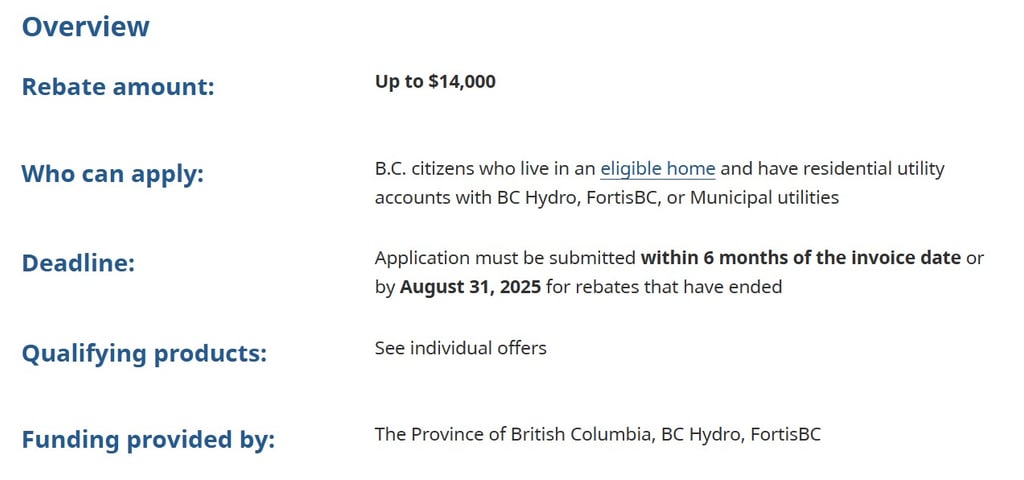 CleanBC provincial rebates & resources help you save money, improve efficiency, and lower greenhouse gas emissions in your home.