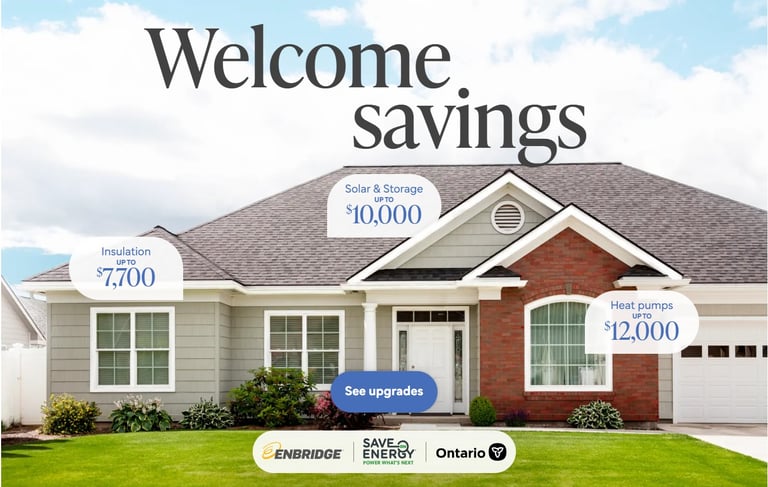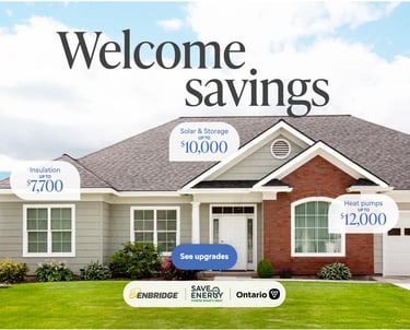 Up to $5600 rebate for your HOME energy efficiency upgrades for Enbridge & Union Gas customer.