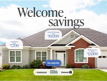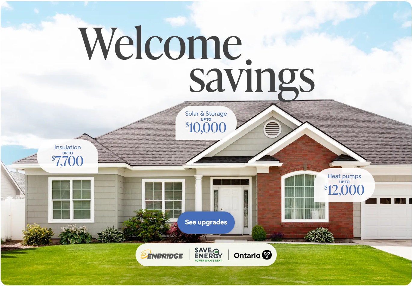 Save on Energy and Enbridge Gas, with endorsement from the Ontario government, have partnered to launch this new program to help Ontarians improve their home efficiency and comfort. Whether you heat your home with natural gas or electricity†, this new program will offer significant rebates for energy-efficient upgrades like insulation, heat pumps, smart thermostats, solar panels and more.